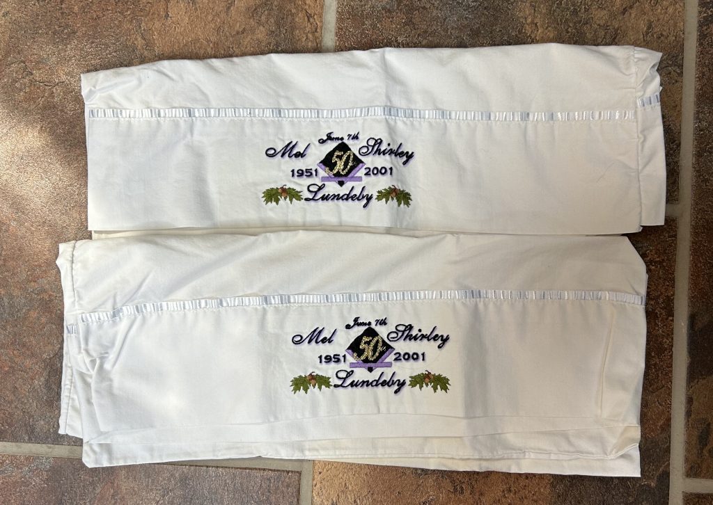two dishtowels 32” x 38” – made by Shirley or Clara